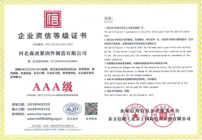 歡迎新老客戶來電垂詢,來廠參觀考察,洽談合作河北森虎緊固件制造有限公司